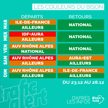 BRIEF Départs pour le réveillon et deuxième week-end des vacances de Noël difficile surtout mercredi et samedi avec des chaussées humides et des agriculteurs.